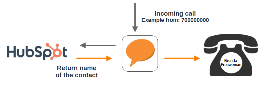 Al activar la integración con HubSpot, cada vez que reciba una llamada, se buscará el número de teléfono de la persona que llama entre los contactos de HubSpot.