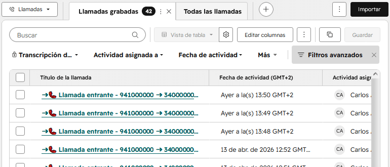 Cada llamada que haga o reciba quedará registrada en un su centralita asociada al nombre de contacto de su cliente de HubSpot.